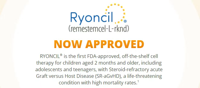 Ryoncil??是2024年12月18日獲得美國FDA 批準的一款MSC細胞藥物,適用于那些在骨髓移植后出現嚴重排異反應、且對激素治療無效的兒童。這是一種高死亡率、無有效治療選項的罕見病,治療窗口狹窄,市場長期處于“無藥可用”狀態(tài)。