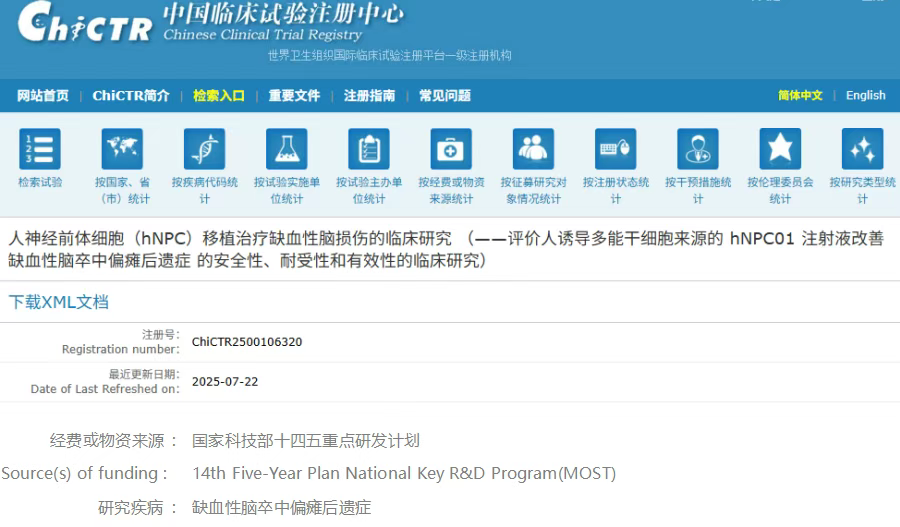 近日,解放軍總醫(yī)院第七醫(yī)學(xué)中心正式注冊啟動?“人誘導(dǎo)多能干細(xì)胞(iPSC)來源神經(jīng)前體細(xì)胞(hNPC01)移植治療缺血性腦卒中偏癱后遺癥”I期臨床試驗(yàn)(注冊號:ChiCTR230007XXXX)。該研究獲國家科技部?“十四五”重點(diǎn)研發(fā)計(jì)劃專項(xiàng)支持,是國內(nèi)首個探索iPSC衍生神經(jīng)前體細(xì)胞治療卒中后運(yùn)動功能障礙的注冊臨床項(xiàng)目,為480萬中國卒中致殘患者帶來功能重建新希望。