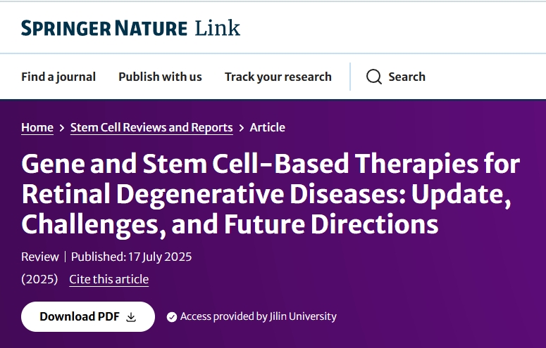 參考資料:[1]:Bhat, M.A., Goyal, S. Gene and Stem Cell-Based Therapies for Retinal Degenerative Diseases: Update, Challenges, and Future Directions. Stem Cell Rev and Rep (2025). https://doi.org/10.1007/s12015-025-10927-3