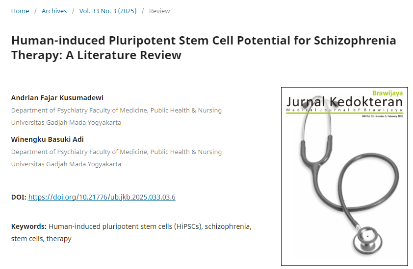 3月初,日惹加查馬達(dá)大學(xué)醫(yī)學(xué)系牽頭在《Jurnal Kedokteran Brawijaya》雜志上發(fā)表了一篇名為《人類誘導(dǎo)多能干細(xì)胞用于精神分裂癥治療的潛力:文獻(xiàn)綜述》的研究成果。[3]