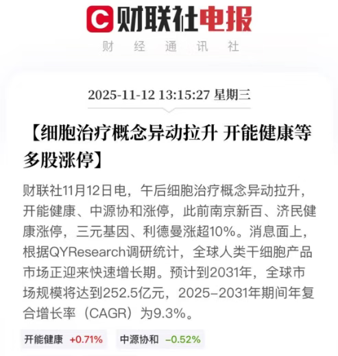 11月12日,A股市場見證了一場精彩的資本狂歡。干細胞概念股集體爆發(fā):[3]