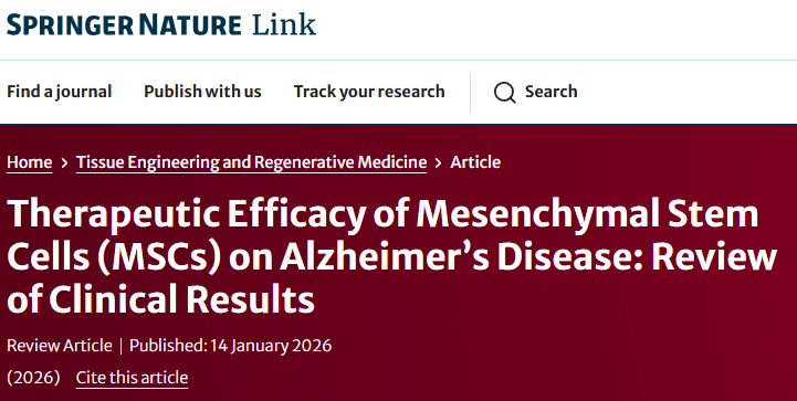 [1]:Kim, AL., Lee, W.K., Kwon, S. et al. Therapeutic Efficacy of Mesenchymal Stem Cells (MSCs) on Alzheimer’s Disease: Review of Clinical Results. Tissue Eng Regen Med (2026). https://doi.org/10.1007/s13770-025-00782-1