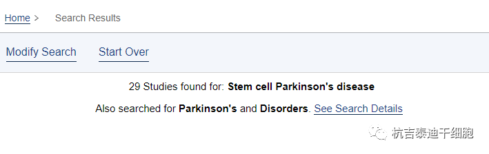 截止2023年4月,在美國國立衛(wèi)生研究院的最大臨床試驗注冊庫clinicaltrials.gov網(wǎng)站上注冊的有關(guān)干細胞治療帕金森的臨床研究項目有29項。