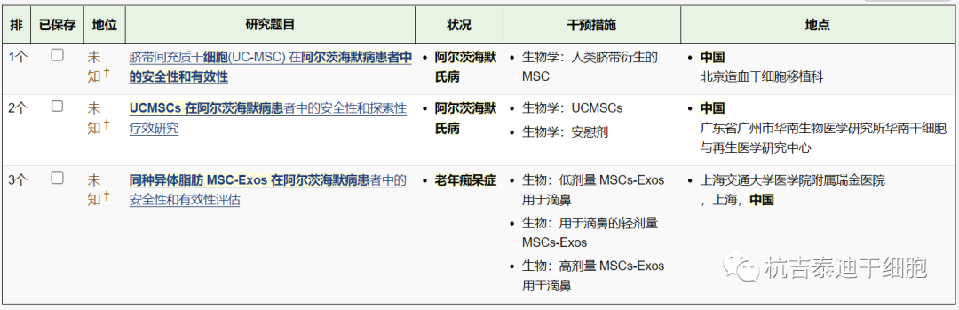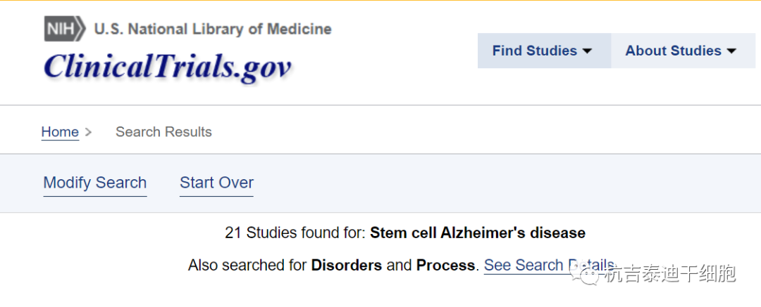 截止2023年4月,在美國國立衛(wèi)生研究院的最大臨床試驗注冊庫clinicaltrials.gov網(wǎng)站上注冊的有關(guān)干細胞治療阿爾茨海默病的臨床研究項目有21項。