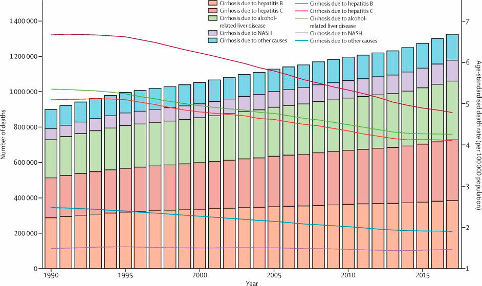 1990-2017 年全球肝硬化死亡統(tǒng)計(jì)數(shù)據(jù)。(來源)。