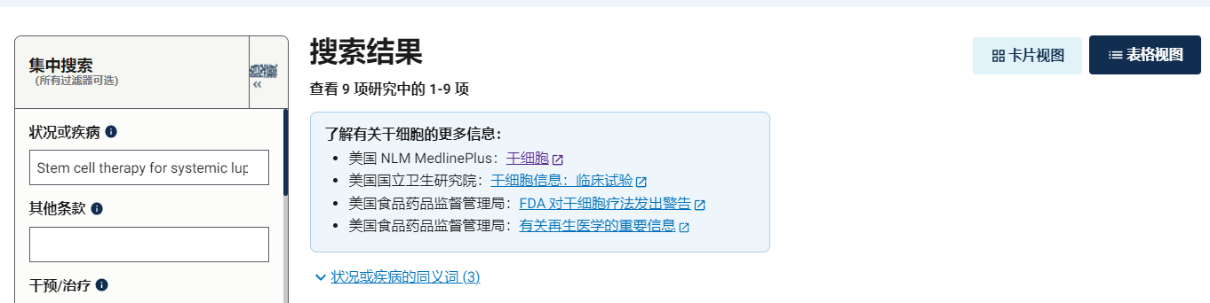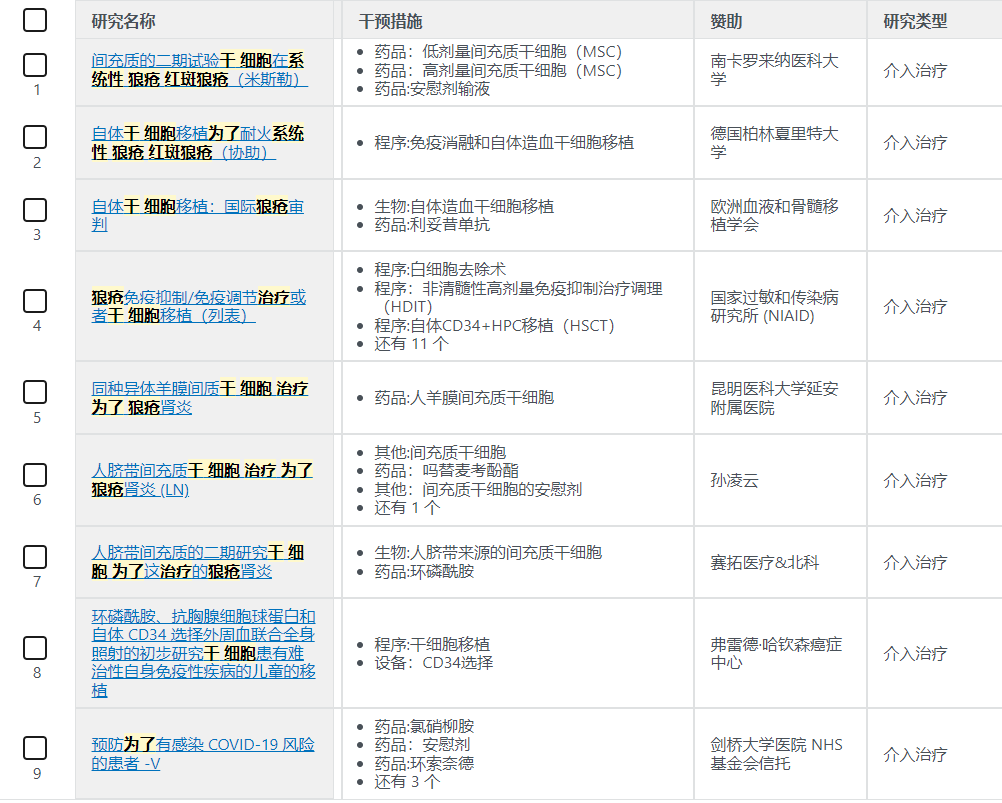 據(jù)ClinicalTrials.gov (https://clinicaltrials.gov) 報(bào)道,目前使用干細(xì)胞治療系統(tǒng)性紅斑狼瘡的患者的臨床試驗(yàn)9項(xiàng),另外還有39項(xiàng)針對(duì)其他相關(guān)自身免疫性疾病的臨床試驗(yàn)。