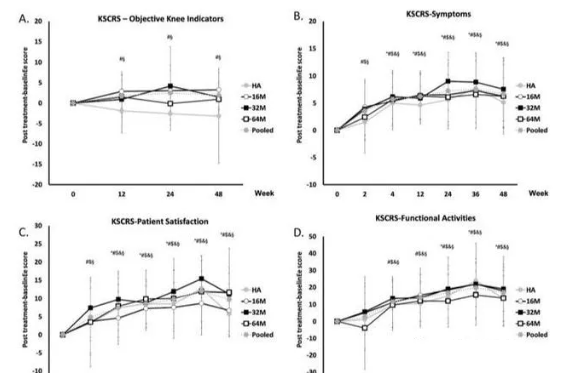 2021年4月,《干細胞轉(zhuǎn)化醫(yī)學(xué)》期刊報道。12名45-65歲的中/重度膝骨關(guān)節(jié)炎患者接受了不同劑量的間充質(zhì)干細胞治療。3組注射劑量分別為1 X106、1X107、5X107。