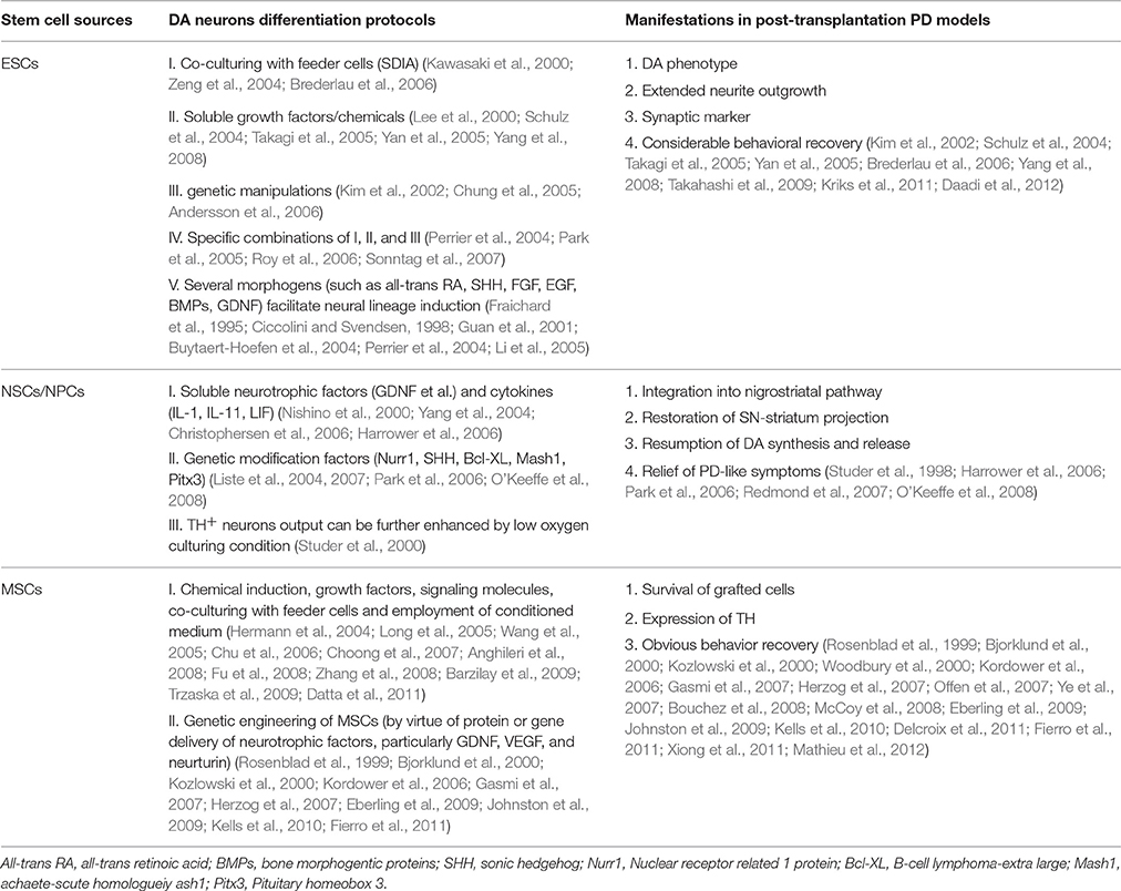 至于NSC,與ESC相比的一個潛在優(yōu)勢是,除了神經譜系分化受限外,它們在移植后不易形成腫瘤和引起免疫排斥反應。然而,神經干細胞顯示出一些缺點,如有限的分化能力和來源、揮之不去的倫理問題、帕金森癥狀的部分緩解。