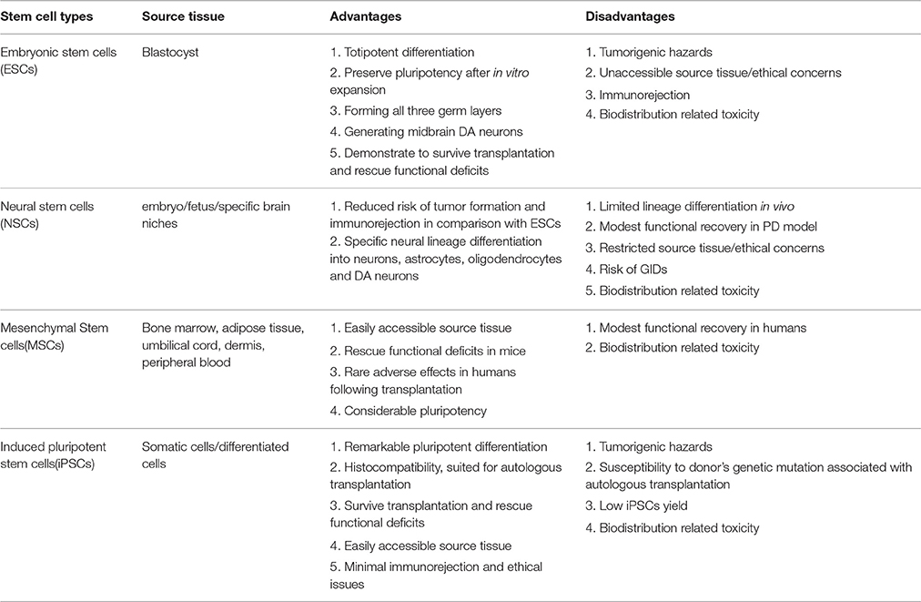 用于帕金森病治療的干細胞亞型的優(yōu)缺點