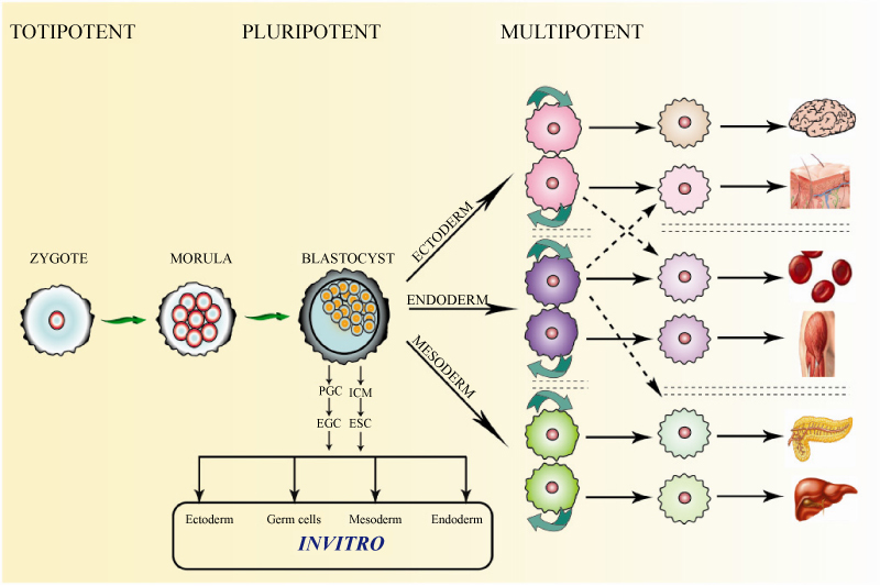 干細(xì)胞被認(rèn)為是細(xì)胞的組成部分。體內(nèi)所有特化細(xì)胞都來自干細(xì)胞。當(dāng)干細(xì)胞分裂時(shí),它們要么產(chǎn)生更多的干細(xì)胞,稱為子細(xì)胞,要么分化成專門的細(xì)胞,如骨骼、血液或腦細(xì)胞。