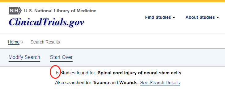 當(dāng)前,隨著干細(xì)胞研究的不斷深入,越來越多的學(xué)者致力于將間充質(zhì)干細(xì)胞等不同類型干細(xì)胞應(yīng)用到脊髓損傷治療相關(guān)的研究中。截止至目前,已有5項注冊的神經(jīng)干細(xì)胞治療脊髓損傷相關(guān)臨床試驗登記注冊在clinicaltrials.gov。