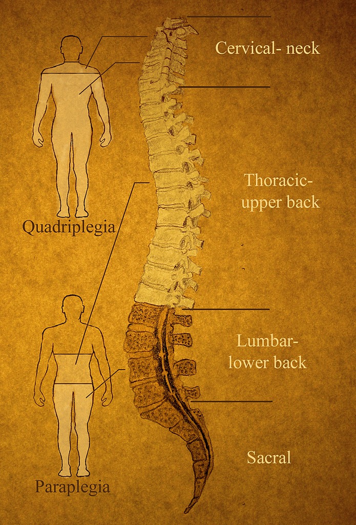 脊柱有不同的部分。 癱瘓的程度取決于受傷的位置。