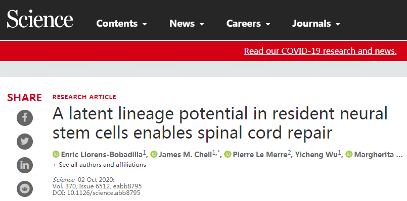 2020年,瑞典Karolinska研究所在《科學》雜志上發(fā)表的一項新研究顯示干細胞可以幫助損傷后的脊髓修復[1],證明了刺激小鼠脊髓中干細胞形成大量新的、神經(jīng)元傳遞信號所必須的少突膠質細胞,可以幫助修復受傷后的脊髓。