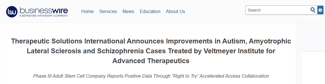 2022年,Therapeutic Solutions International宣布由Veltmeyer高級治療研究所治療的自閉癥、肌萎縮側(cè)索硬化癥和精神分裂癥病例病情有所好轉(zhuǎn)。