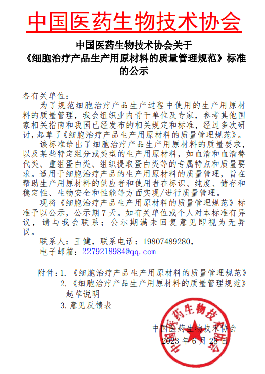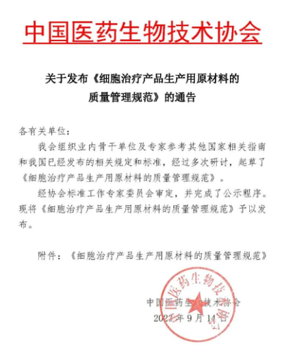 吉林中科生物工程股份有限公司參與制定:《細(xì)胞治療產(chǎn)品生產(chǎn)用原材料的質(zhì)量管理規(guī)范》