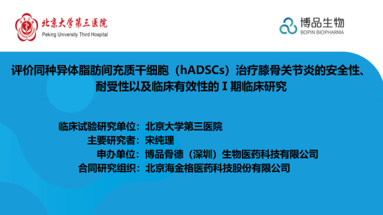 經(jīng)國(guó)家食品藥品監(jiān)督管理局批準(zhǔn)(批準(zhǔn)通知書(shū):2022LP01030),由博品骨德(深圳)生物醫(yī)藥科技有限公司申辦,北京大學(xué)第三醫(yī)院骨科牽頭的“評(píng)價(jià)同種異體脂肪間充質(zhì)干細(xì)胞治療膝骨關(guān)節(jié)炎的安全性、耐受性以及臨床有效性的Ⅰ期臨床試驗(yàn)”項(xiàng)目啟動(dòng)會(huì),于2023年2月15日在北京大學(xué)第三醫(yī)院順利召開(kāi)。